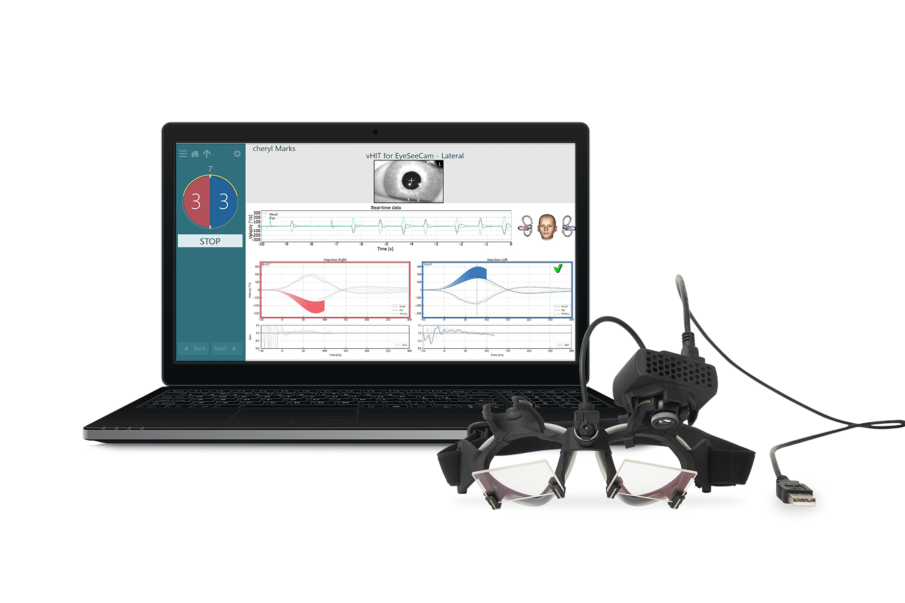 El sistema VisualEyesTM EyeSeeCam vHIT, proporciona una medida rápida y objetiva del reflejo vestíbulo- ocular.(VOR)